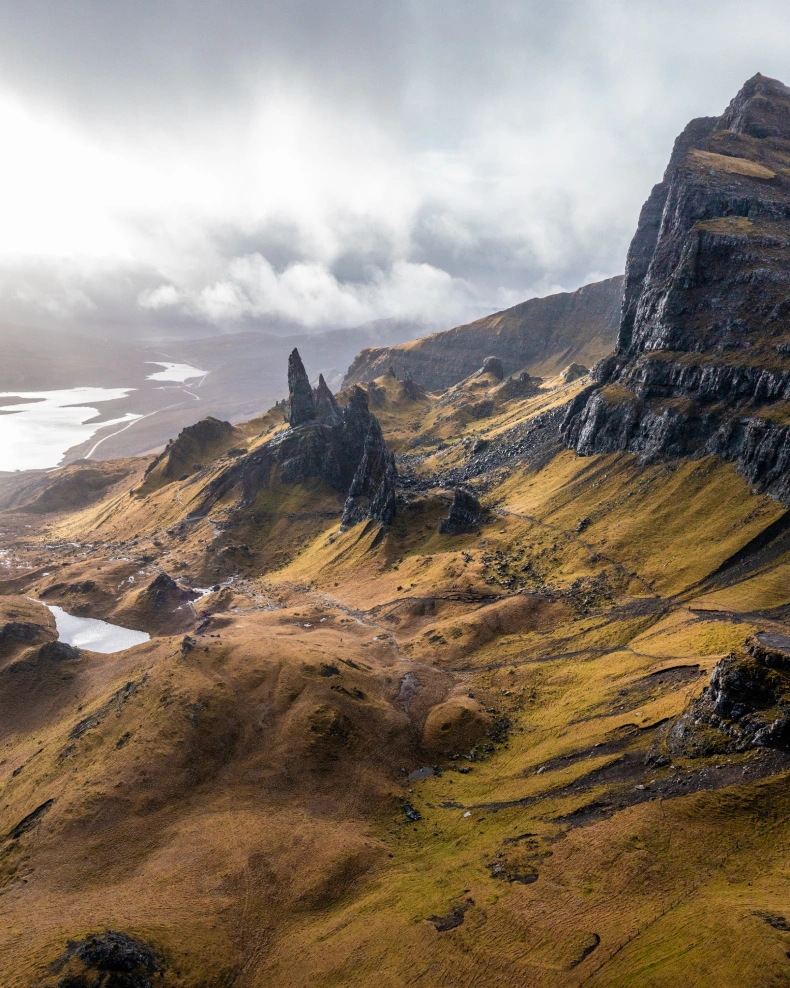 This iconic basalt pinnacle, part of the Trotternish Ridge, stands proudly amidst a landscape shaped by ancient landslides. In autumn, the greens of summer give way to golden grasses and dark mosses, making the already dramatic scenery even more striking. The well-maintained path leads you through a mystical landscape, often shrouded in a light mist that only adds to its allure. Reach the viewpoint for unparalleled vistas across the Sound of Raasay and beyond – a truly epic reward for your efforts!