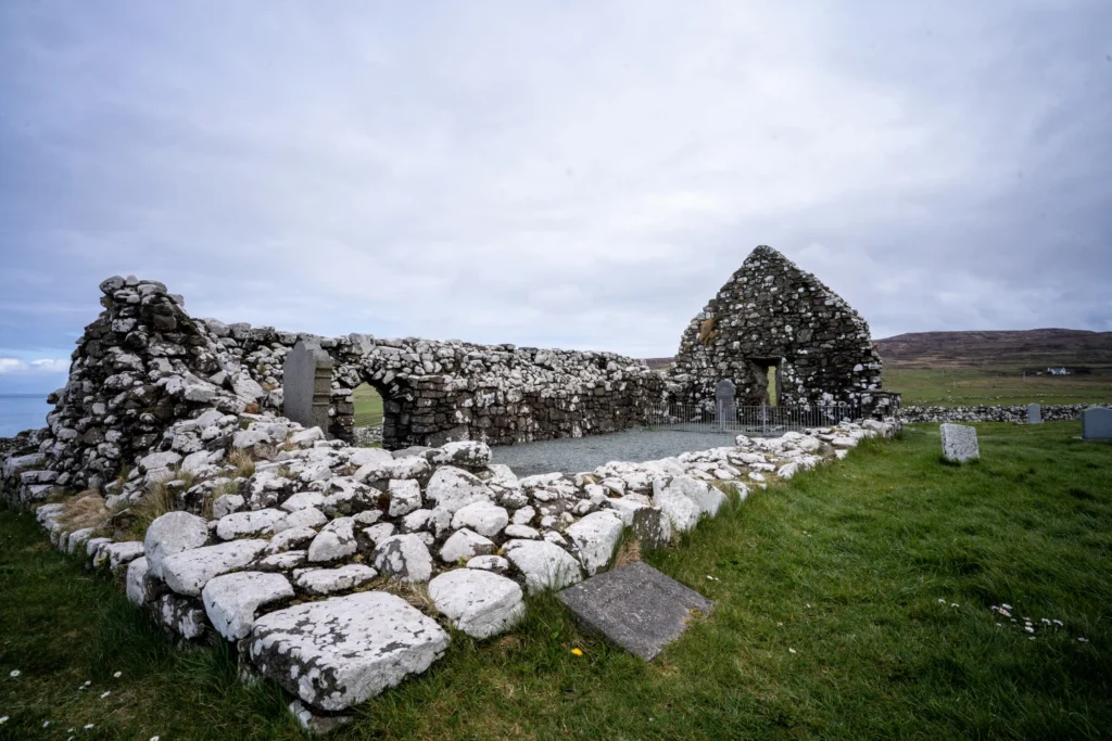 This site is the most atmospheric and historically significant spot on the peninsula, located right at Waternish’s northern tip. The ruined church stands starkly against the sea’s backdrop and is the site of a gruesome, pivotal historical event.